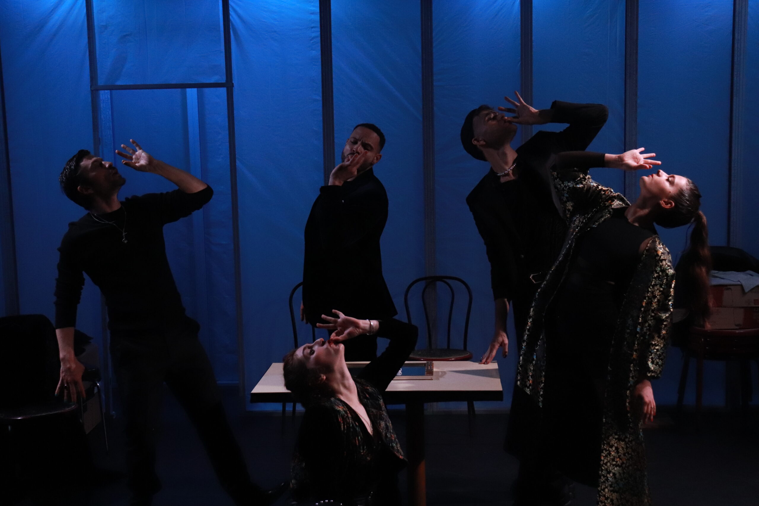 Charismatiques, excentriques et imprévisibles, les personnages de ce gang nous embarquent au rythme de la cloche d’un combat de boxe pour une soirée orageuse entre vengeance et coup de dés, désir et légitimité. Gangster.e.s convoque l’univers de la comédie musicale et des films de genre pour explorer l'obscurité derrière l'éblouissement du monde de la pègre et questionner la justice.